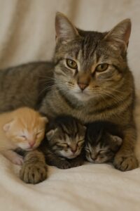Katzen haben kein Bedürfnis danach Mutter zu sein. Mutter zu werden ist für die Katze physisch und körperlich sehr belastend. Oft werden sie Mutter, wenn sie selbst noch Kinder sind. Der Körper ist zwar fähig, mental ist das für Katzen aber eine ganz andere Sache.